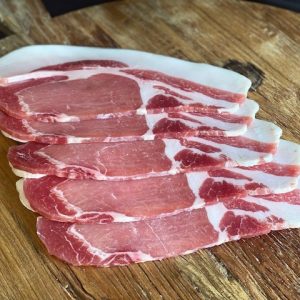 Rare Breed Pork RIND ON Dry Cured Streaky Bacon Min. 200g **New**